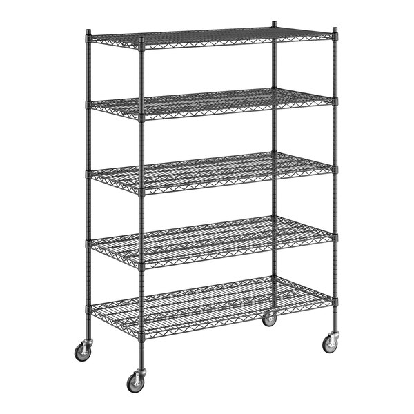 Keep your storage area organized with this Regency 24" wide NSF black epoxy mobile wire shelving starter kit with 5 shelves and 64" posts!