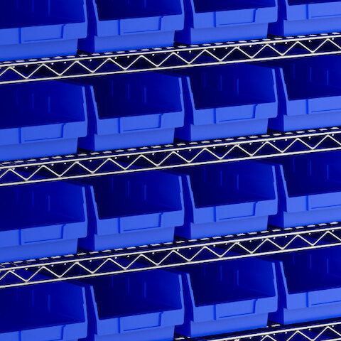 The included high-density, injection-molded shelf bins are designed to withstand the rigors of industrial environments, feature a highly durable polypropylene construction with reinforced edges, and are impervious to most chemicals.