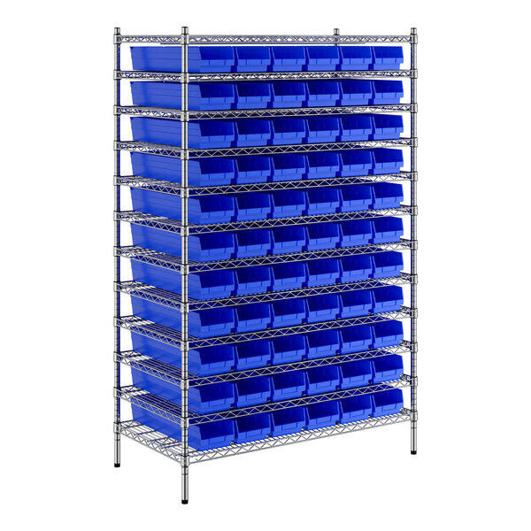 View All ItemsMaintain an organized industrial space with this Regency 24" x 48" x 74" wire shelving unit with 66 blue bins.