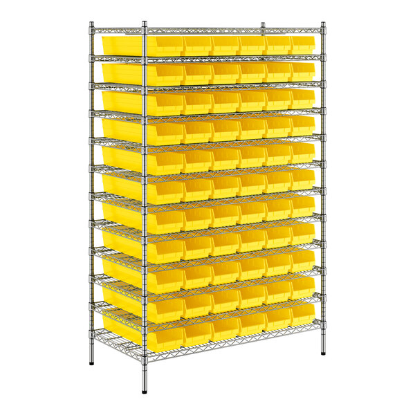 View All ItemsMaintain an organized industrial space with this Regency 24" x 48" x 74" wire shelving unit with 66 yellow bins.