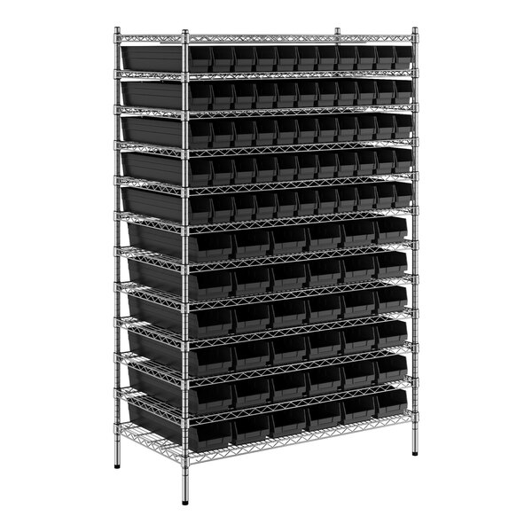 View All ItemsMaintain an organized industrial space with this Regency 24" x 48" x 74" wire shelving unit with 91 black bins.