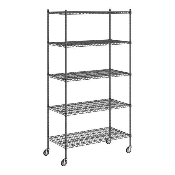 - Item #: 460b2448km85Regency 24" x 48" x 92" NSF Black Epoxy Mobile Wire Shelving Starter Kit with 5 Shelves