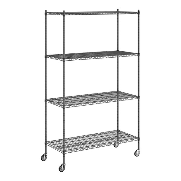 View All ItemsKeep your storage area organized with this Regency 24" NSF black epoxy mobile wire shelving starter kit with 4 shelves!
