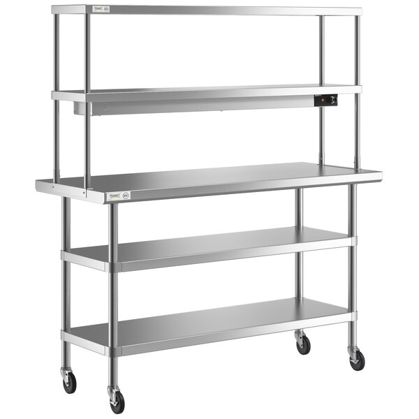 Regency 24" x 60" Expeditor Table with Double Overshelf, Strip Warmer, and 2 Undershelves