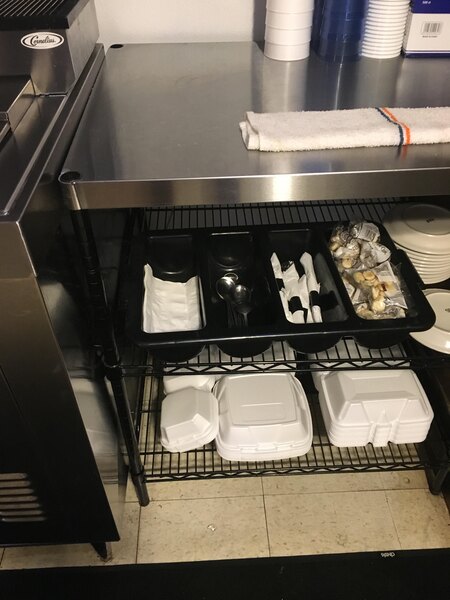 We used these shelves to make a table for our waitress station. Two of these shelves and one of the solid stainless shelves for the top