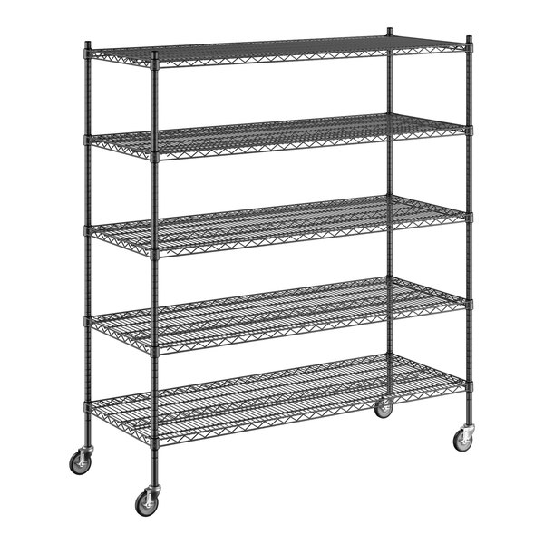 Keep your storage area organized with this Regency 24" wide NSF black epoxy mobile wire shelving starter kit with 5 shelves and 64" posts!