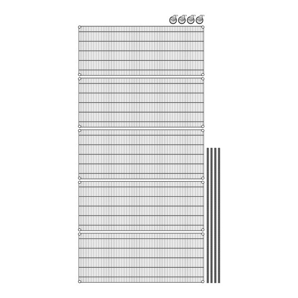 Regency 24" x 60" x 70" NSF Black Epoxy Mobile Wire Shelving Starter Kit with 5 Shelves