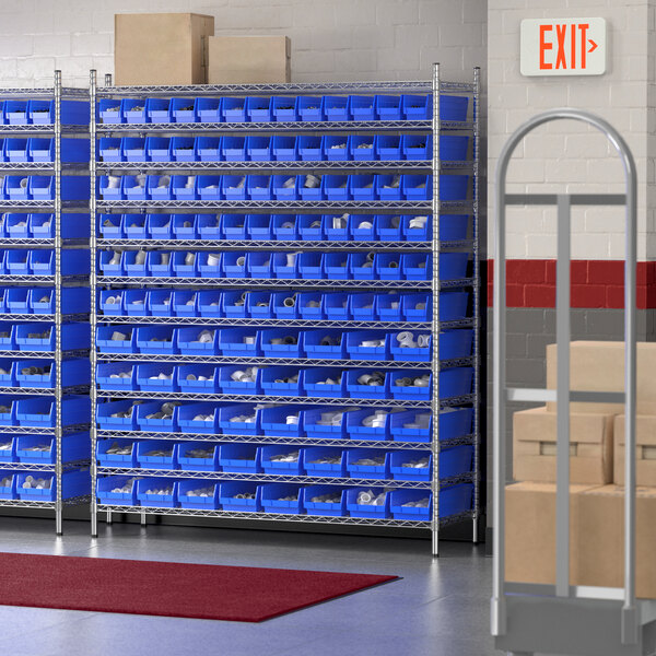 View All ItemsMaintain an organized industrial space with this Regency 24" x 60" x 74" wire shelving unit with 118 blue bins.