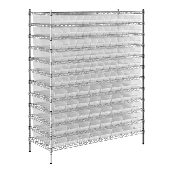 View All ItemsMaintain an organized industrial space with this Regency 24" x 60" x 74" wire shelving unit with 118 clear bins.