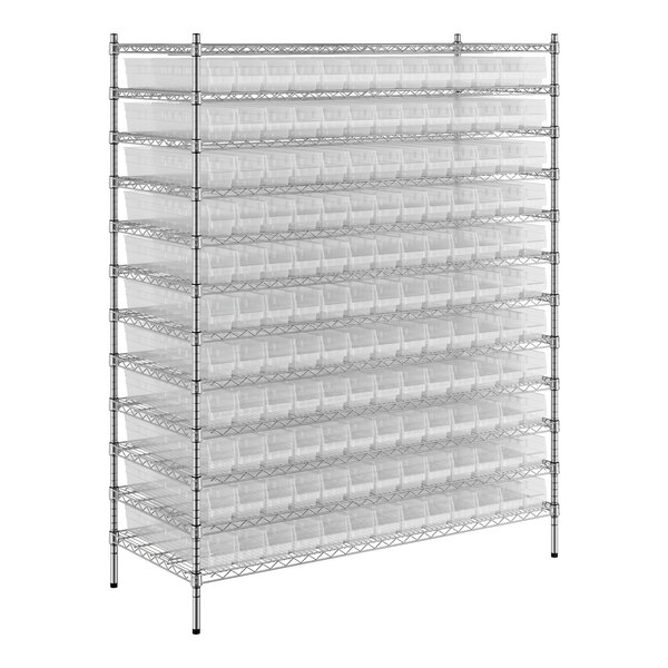 View All ItemsMaintain an organized industrial space with this Regency 24" x 60" x 74" wire shelving unit with 143 clear bins.