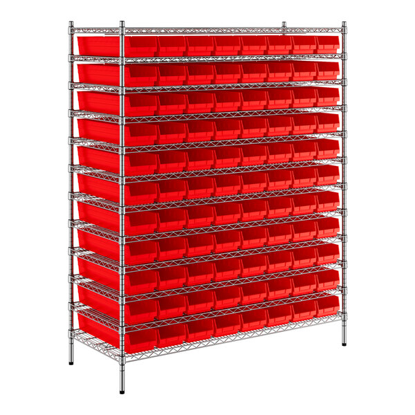 View All ItemsMaintain an organized industrial space with this Regency 24" x 60" x 74" wire shelving unit with 88 red bins.