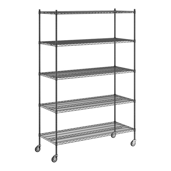 Regency 24" x 60" x 92" NSF Black Epoxy Mobile Wire Shelving Starter Kit with 5 Shelves
