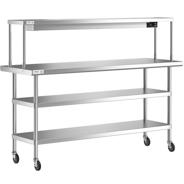 Regency 24" x 72" Expeditor Table with Single Overshelf, Strip Warmer, and 2 Undershelves