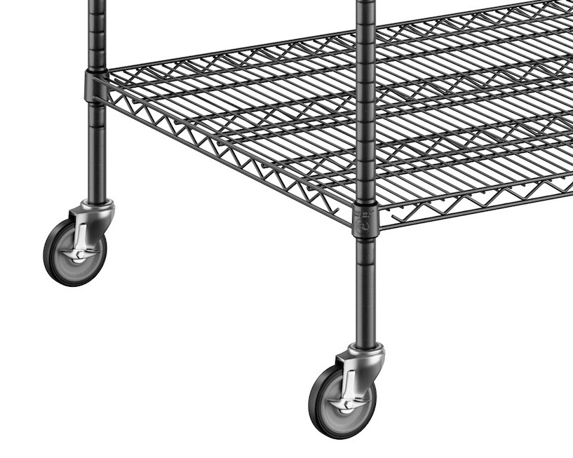 The epoxy coating resists corrosion to ensure long-lasting use, and it is suitable for use in dry, humid, or moist environments, making the unit a multi-purpose investment that's sure to accommodate your ever-evolving needs. Because the coating is black, it's subtle and professional, perfect for office settings or for merchandising applications and front-of-house sales. Plus, the included 5" casters allow for quick access and easy cleaning, and the casters are equipped with brakes to secure the unit in place when needed.