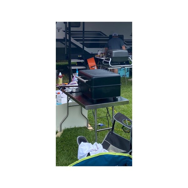 I used this table to hold my small Traeger grill for a steak competition. It was perfect. I didn’t have to worry about a plastic table melting, or the weight of the grill. It provided enough space for my grill and an area to prep. Clean up and sanitizing was a breeze. Folds up easily and doesn’t weight too much. Gave me a nice sturdy work surface.