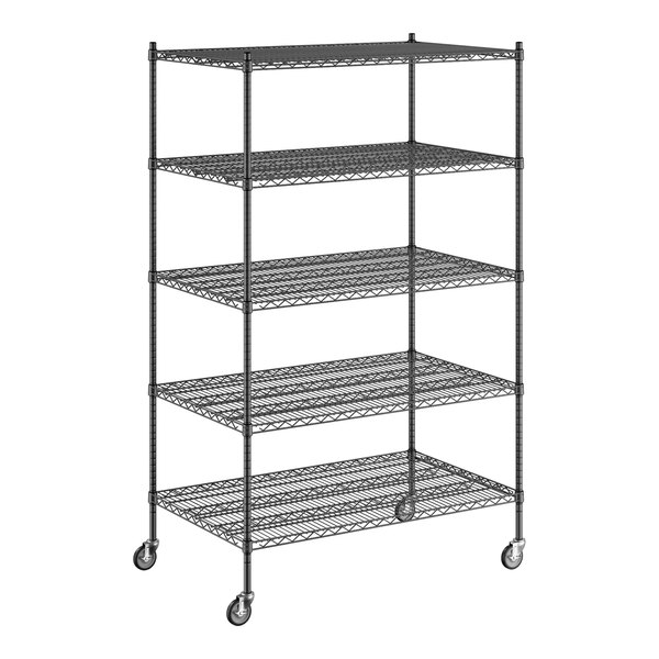 Regency 30" x 48" x 80" NSF Black Epoxy Mobile Wire Shelving Starter Kit with 5 Shelves