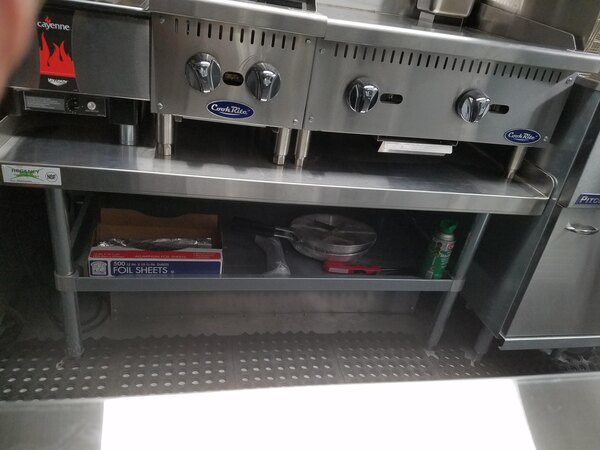 Great price! Perfect size for my food truck. I was able to fit my 24" griddle and 24" grill on it. Very sturdy and easy to put together