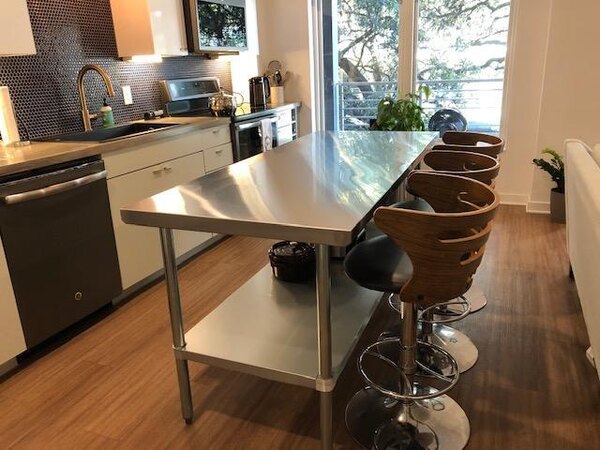 We purchased two of these tables. The surface is very smooth, even and easy to clean. The bottom shelf height is adjustable so it can be set to meet the code. The overall installation is very easy even with one person installing it. For the price, this is a great buy.
