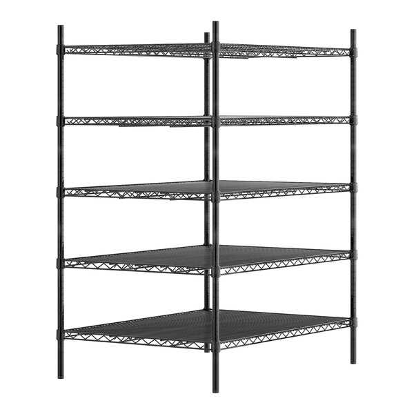 This Regency NSF black epoxy 5-shelf kit with 54" posts will save space and help you organize storage areas in your restaurant, hotel, bar, or warehouse. For maximum versatility, the epoxy coating allows for use in either dry or moist environments, making the unit a multipurpose investment that's sure to accommodate your ever-evolving needs. Plus, the unit's high-quality design is commercial grade and delivers the reliable performance every business expects and needs.
