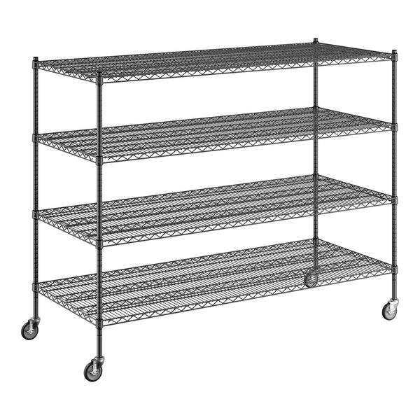 Regency 30" x 72" x 60" NSF Black Epoxy Mobile Wire Shelving Starter Kit with 4 Shelves