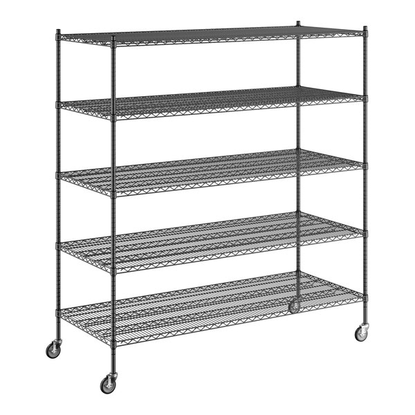 Regency 30" x 72" x 80" NSF Black Epoxy Mobile Wire Shelving Starter Kit with 5 Shelves