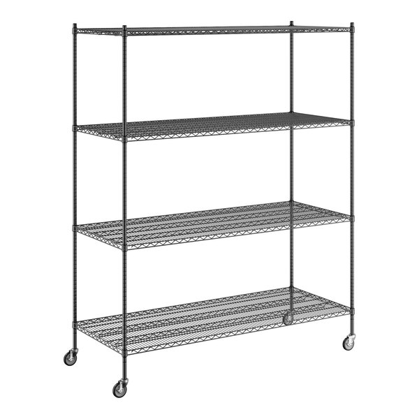Regency 30" x 72" x 92" NSF Black Epoxy Mobile Wire Shelving Starter Kit with 4 Shelves