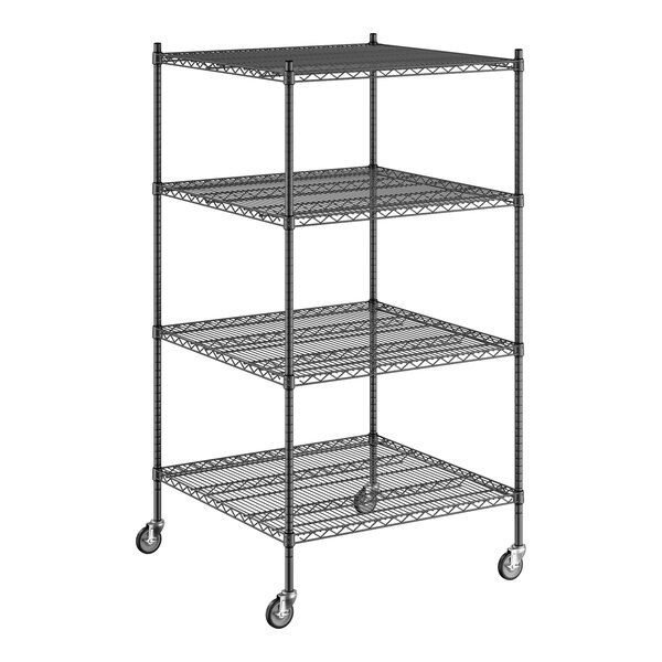 View All ItemsKeep your storage area organized with this Regency NSF black epoxy mobile wire shelving starter kit with 4 shelves!