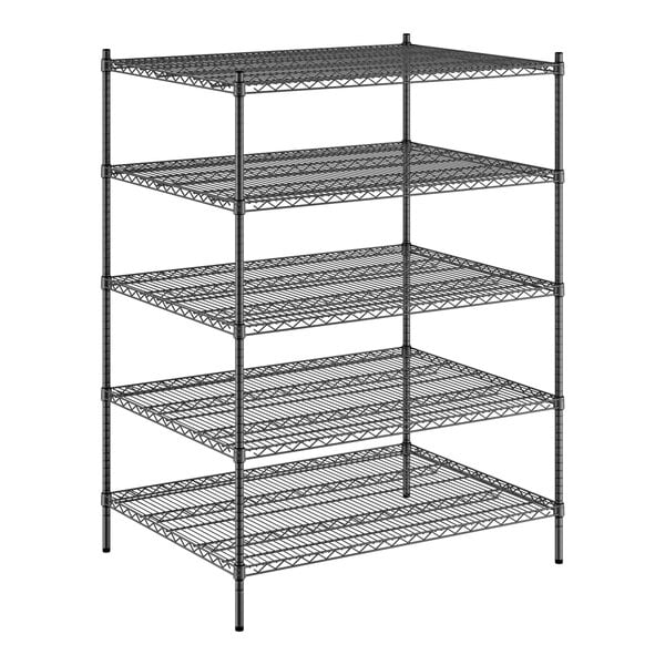 Regency 36" x 48" x 64" NSF Black Epoxy Stationary Wire Shelving Starter Kit with 5 Shelves