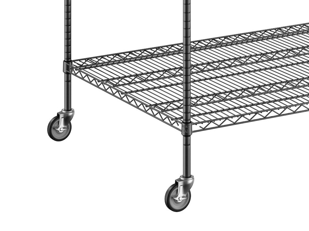 View All ItemsKeep your storage area organized with this Regency NSF black epoxy mobile wire shelving starter kit with 4 shelves!