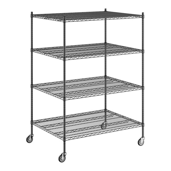 Regency 36" x 48" x 70" NSF Black Epoxy Mobile Wire Shelving Starter Kit with 4 Shelves