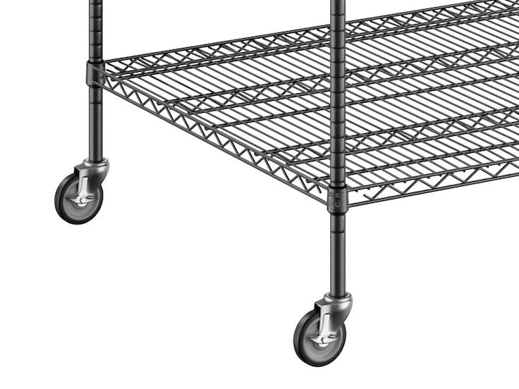 View All ItemsKeep your storage area organized with this Regency NSF black epoxy mobile wire shelving starter kit with 4 shelves!