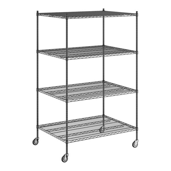 Regency 36" x 48" x 80" NSF Black Epoxy Mobile Wire Shelving Starter Kit with 4 Shelves