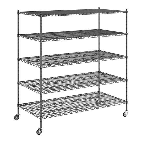 View All ItemsKeep your storage area organized with this Regency NSF black epoxy mobile wire shelving starter kit with 5 shelves!