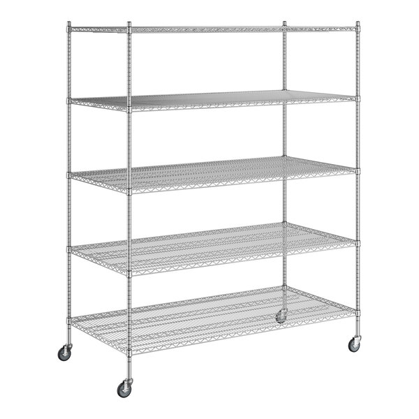 Made of sleek, durable chrome, this unit is ideal for use in your business's merchandising and display spaces or in back-of-house dry storage areas. Plus, the included 5" casters allow for quick access and easy cleaning, and the casters are equipped with brakes to secure the unit in place when needed.
