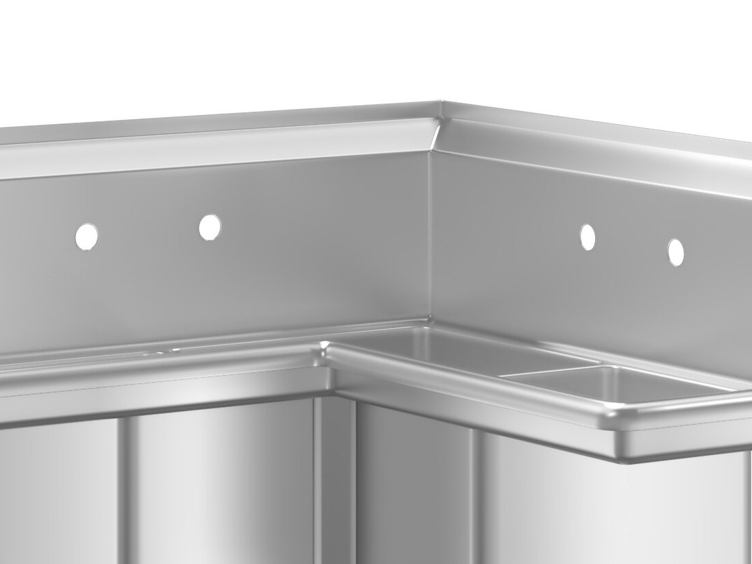 - Item #: 522s31818lrcSteelton 57" 18-Gauge Stainless Steel 3-Compartment Commercial Corner Sink with 2 Drainboards - 18" x 18" x 12" Bowls