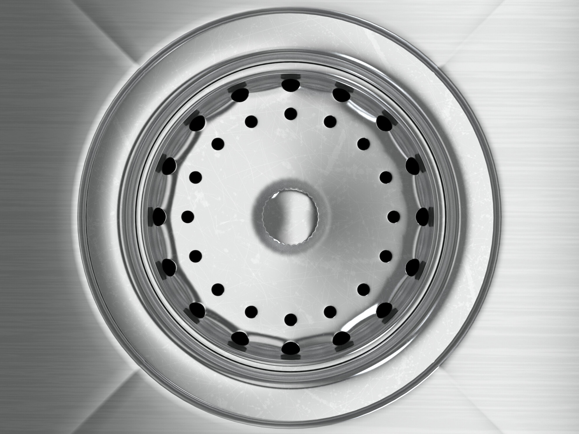 This sink comes with a 3 1/2" basket strainer to catch food debris and prevent clogs.