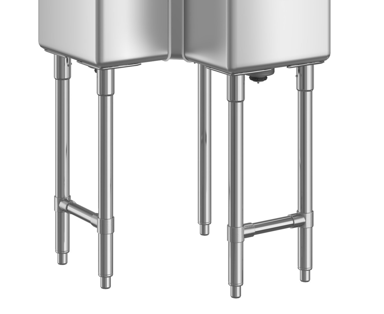 This model has stainless steel legs and adjustable stainless steel bullet feet to keep the sink level and stable.