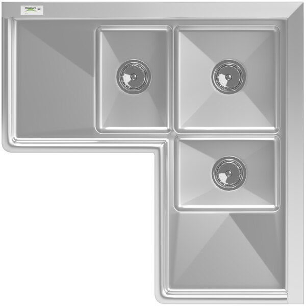 - Item #: 600s3101410xcRegency 39" 16 Gauge Stainless Steel Three Compartment Commercial Corner Sink with 2 Drainboards - 10" x 14" x10" Bowls