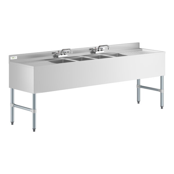 This sink fits our needs fairly well. The four bays offer all of the required bays (handwashing, dishwashing, rinsing, and sanitizing) in one unit. I am a little disappointed that the drain plugs are kinda chintzy and often don't hold the water in the bays for a longer period of time... they leak out over the course of a couple of hours because they lack a tight seal. The stainless steel is decent, but not top quality. Overall, a decent sink in this price range though.