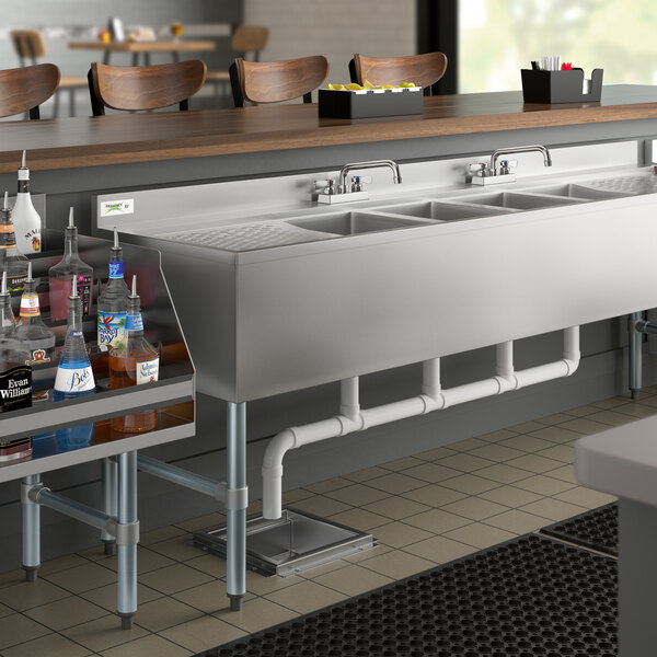 The deep 10" sink bowls accommodate all types of barware, including pitchers and tall glasses. Plus, the drainboards feature a grooved surface to help hold onto your barware as the excess water drains downward into the sink.
