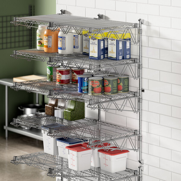 Make the most of your storage space with this Regency 4-level chrome wall-mount middle shelf post with double brackets for 24" deep shelves.