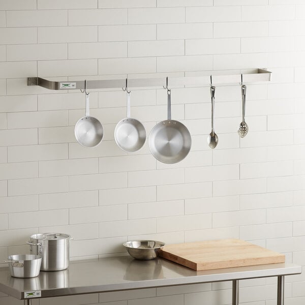 Every commercial kitchen needs a pot rack, and this wall mounted single line rack from Regency is perfect for the job. It's a great price and is constructed nicely. Highly recommended.