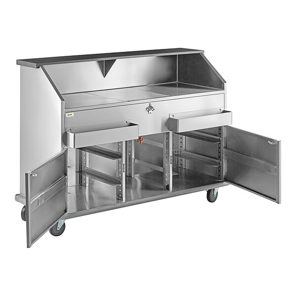 Thanks to its all-welded type 304 stainless steel construction, this portable bar does not retain odors from spills and is easy to wipe clean and sanitize.