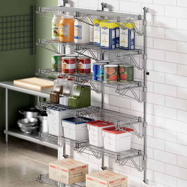 View All ItemsMake the most of your storage space with this Regency 5-level chrome wall-mount middle shelf post with double brackets for 12" deep shelves.