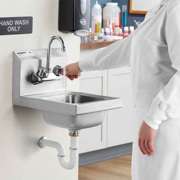 Efficiently wash and sanitize your hands with this Regency wall-mounted hand sink!