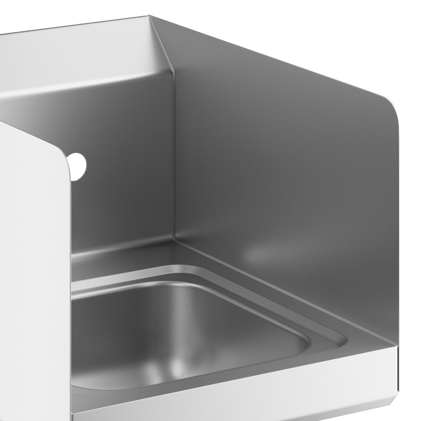 To help limit possible contamination, two 18-gauge type 304 stainless steel side splashes are included with the sink. This added protection allows you to place the sink closer to work counters and other high-traffic areas without worry.