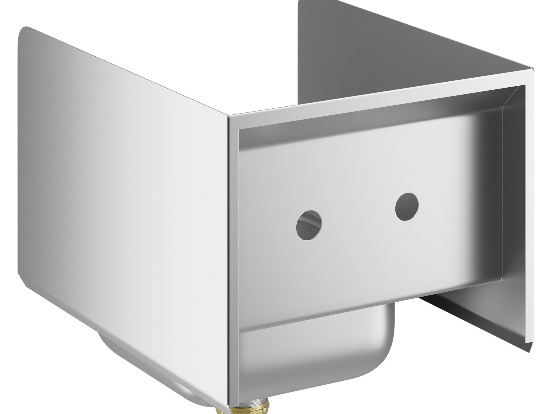 This hand sink includes a strainer and has two holes punched on 4" centers for a wall-mounted faucet (sold separately).