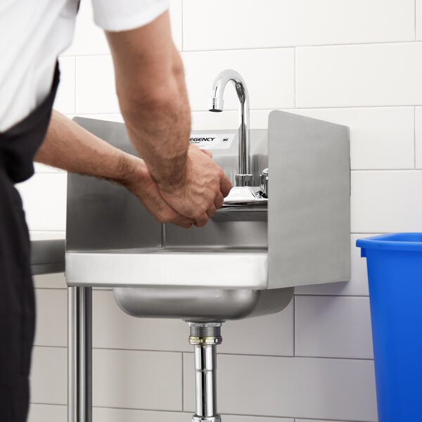 Efficiently wash and sanitize your hands with this Regency wall-mounted hand sink!