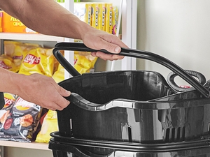 These shopping baskets are wonderful. I have purchased 2 of them to keep in the trunk of my car. I take one in the store with me and just load everything right into it. I have a reusable shopping bag for my smaller items to keep them from falling out of the slots. When I get to the car if i have more than 1 store to shop at i just load everything into one basket and keep one empty for toasting around the store. If I have a lot of shopping and need both baskets I just use the store buggy and load into these baskets at the car. Then I can easily roll everything into ththe houses and i dont need a bunch of bags.