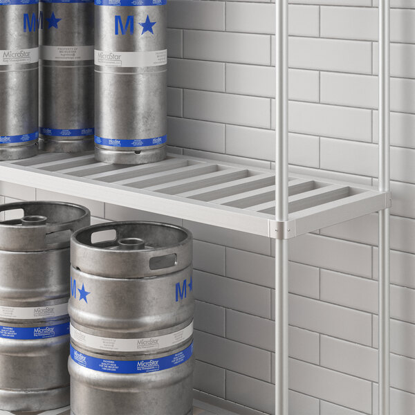 Designed for use with Regency keg racks, this bottom shelf is a perfect replacement for a Regency aluminum keg rack (sold separately), making for convenient adjustment that ensures this unit serves your needs at all times. It is also easy to assemble, so you can get it from the box to the storage room quickly.